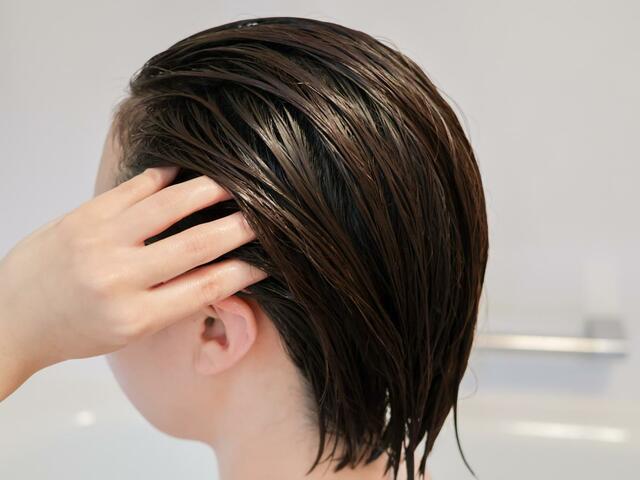 このスカルプジェルを使うときは、シャンプー前の髪を濡らした状態で頭皮全体に揉み込みます。