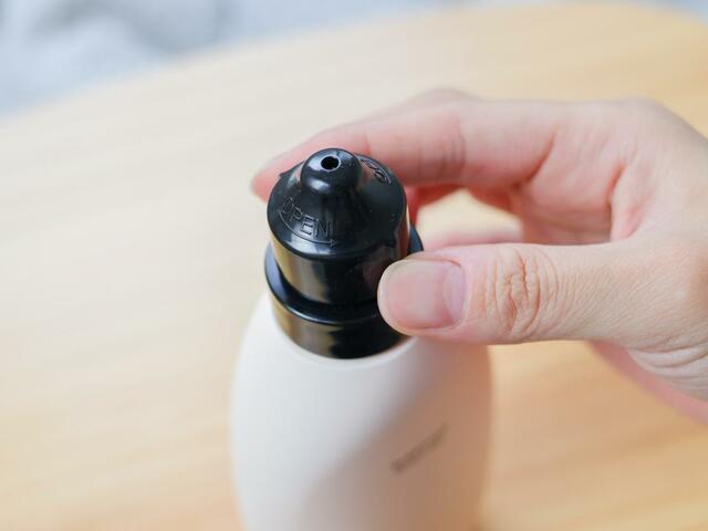 ちなみに、ボトルは90度回して開けるノズル型。