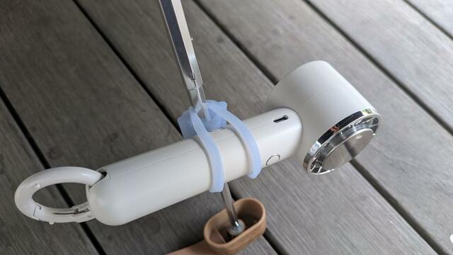 これで傘にハンディファンが固定されました。