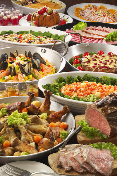 豪華なクリスマスパーティーらしい、バラエティに富んだメニューが並んでいます。