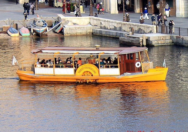 ディズニーシーの風景にとても良く似合う外輪船。時折鳴り響く甲高い汽笛の音や、静かに水を掻き分けて進む音が異国情緒を一層盛り上げてくれます。