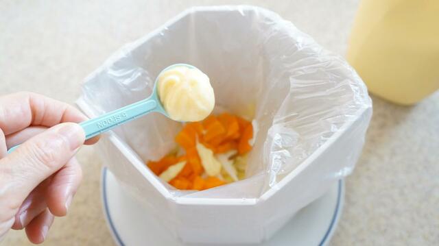 調理をした後に、アイラップホルダーの中で調味料を加えて和えたり混ぜたりできるので、洗い物をグッと減らせるのも嬉しいポイント。