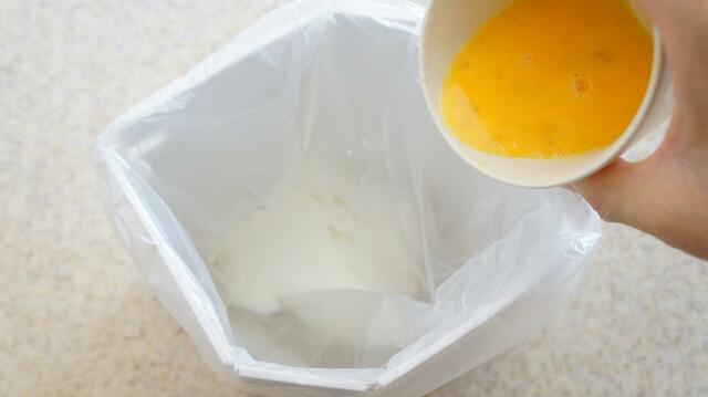 しっかりと口を開くことができるので、開口部が汚れる心配もなくなり、アイラップの容量を最大限に生かすことができます。特に牛乳や卵、水などの液体を加えるときは、便利さを実感しますよ。
