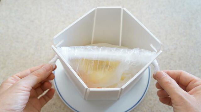 袋の端を横のスリットに通すと適度な力で閉じることができ、蒸気が発生しても余分な圧力を外に逃がせるんです。