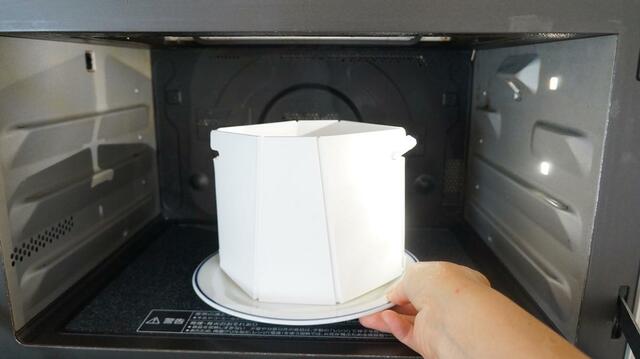 立てた状態で電子レンジに入れられるので、安定性もバッチリ。