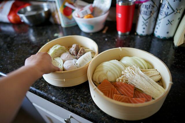 「暑い季節に蒸し料理は……」と思う人もいるかもしれませんが、具材を切って入れるだけの蒸し料理はキッチンでの作業が少なく簡単にでき、クーラーで冷えた体を温めてくれるので案外夏向き。