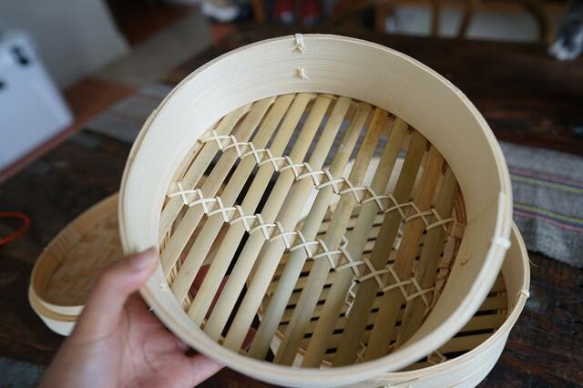天然素材の竹製。はじめて開けたときは竹の匂いがします。私はこの自然の匂いが好きですが、何も具材をいれず空焚きをすれば、匂いは薄まります。