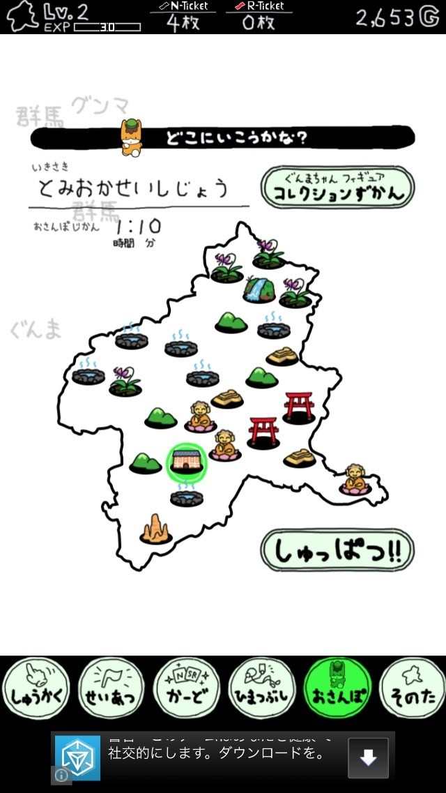 それが「ぐんまのやぼう あぺんどじゃぱん」。特産品を収穫してG(GUNMA)を稼いで制圧する。というベーシックなルールはそのままに、さまざまなミニゲームを追加。ぐんまちゃんを群馬各地にお散歩させるミニゲームでは、「ぐんまちゃんフィギュア」をゲットできたりしますよ。