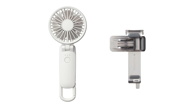 大風量(5段階調節)で静音、ハンディ、デスクファン、ストラップでハンズフリーとして3WAYで利用できる同社の人気商品ハンディファンと、ハンディファンを日傘などに取り付け可能な専用クリップのセットが新発売。