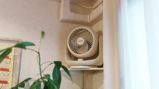 もちろん、本来の使い方であるサーキュレーターの定位置としても優秀です。高い位置に設置できるから、空気が循環しやすくなる。