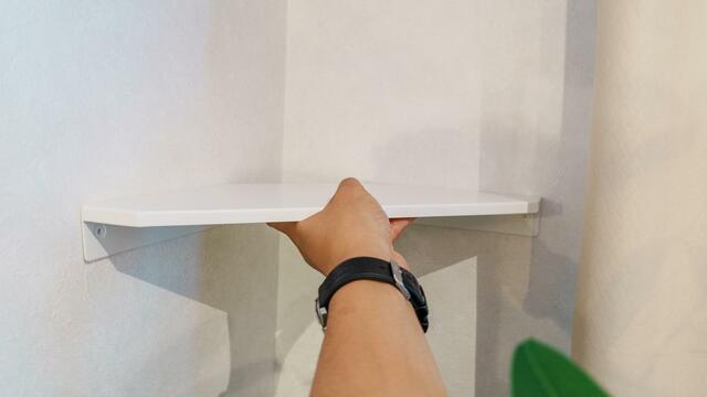 壁にピタッとフィットする。コーナー専用の“浮かせ棚”