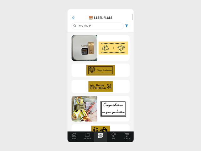 アプリにはさまざまなフォントやイラストが用意されているので、ラベルを自由にデザインできます。