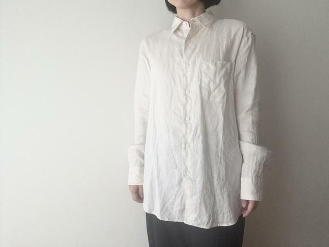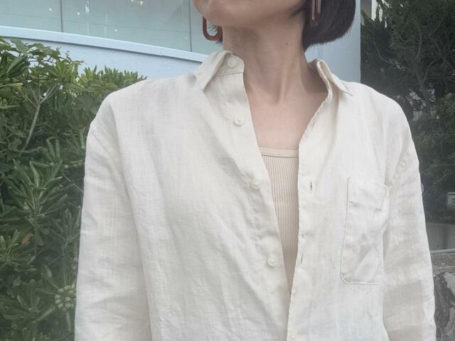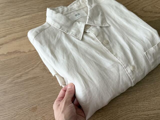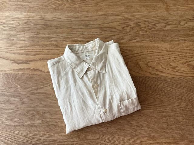 部屋着っぽくならないようにしたいなと思い購入したのが、ユニクロの「プレミアムリネンシャツ」。