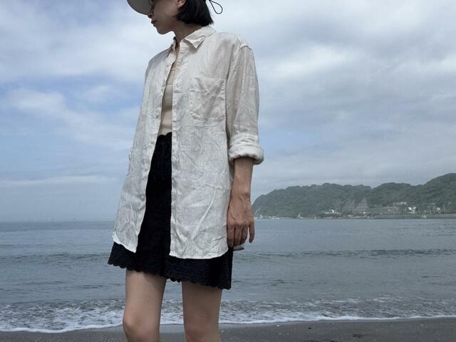 このリネンシャツを使って、おそらくこの夏いちばんするであろうコーディネート。