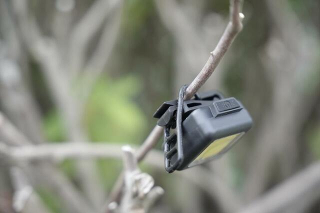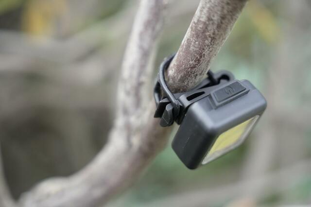 ライト自体が軽いので、ストラップを絞ればこんな細い木にも取り付けられます。