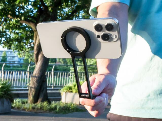磁力で脱着できるMagSafeに対応しているので、iPhone(iPhone 12以降)の背面を近づけるだけで「ピタッ」と装着できるんです。