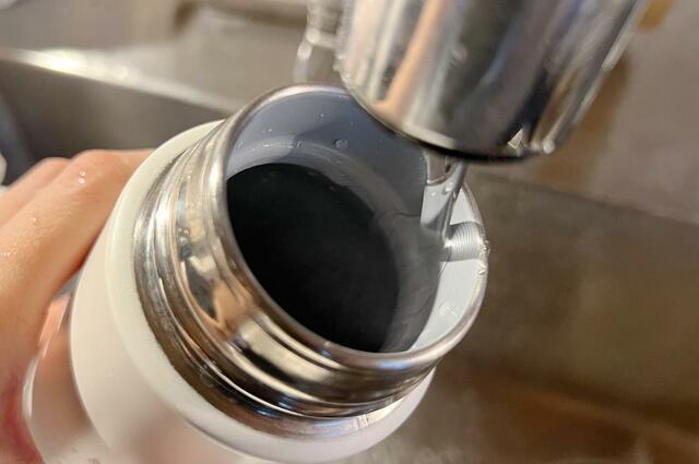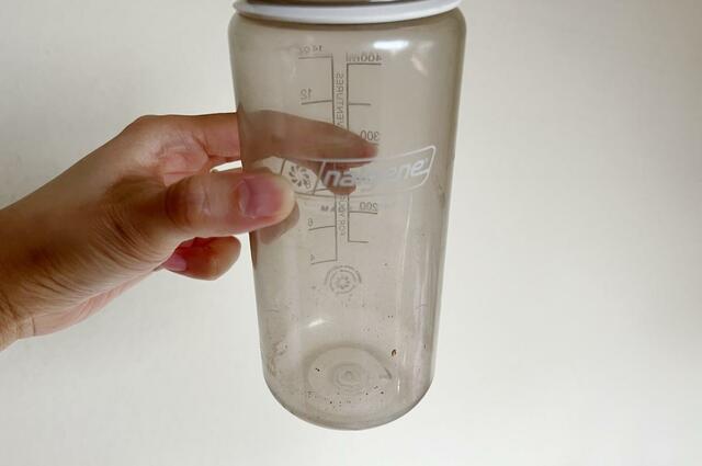 わが家は「自分の水筒は自分で洗う」ルールなのですが、パートナーが外仕事で使っているボトルをよく見てみたら、結構汚れていて……(笑)。クリーナーの洗浄力を試すにはもってこいです。