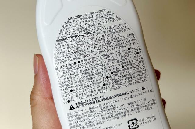 成分は研磨材(70%)、アルカリ剤(重炭酸ソーダー)で、他の洗剤や酸性または塩素系洗剤類と併用しないでくださいとのこと。