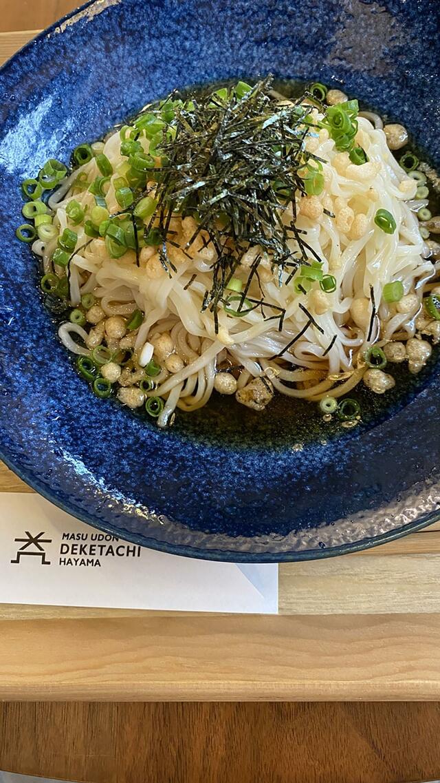 「益うどんDEKETACHI」で、ぶっかけ冷やしうどんを食べる。コシのあるつるりとしたうどん、美味しかった。