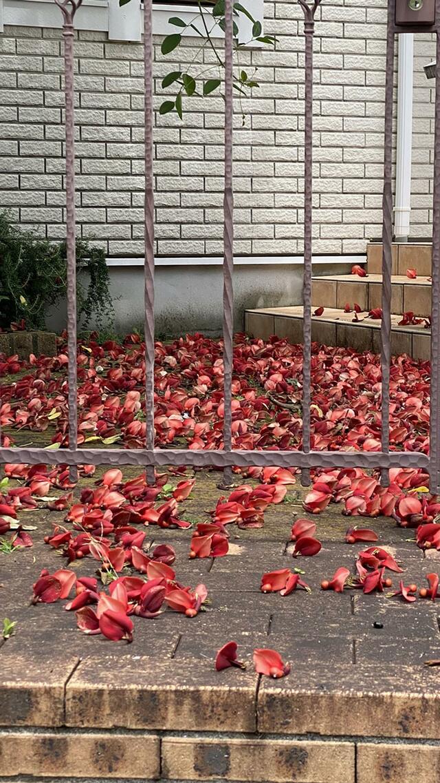 葉山のうどん屋さんへ行ってみよう!と坂道を下る途中、真っ赤な花びらが散っていて、絨毯みたい。調べたら「デイゴの花」。ああ、あの歌のデイゴの花とはこんなに華やかなものだったのか! ひとつ利口になった。