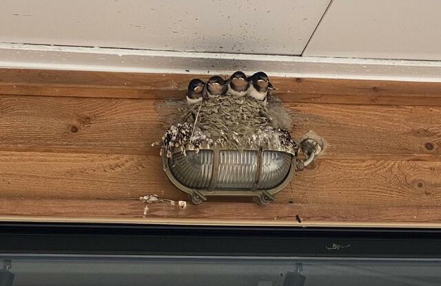 バスを降りたところにあるビール醸造所Yacht Clubの壁面にある照明器具を利用して、ツバメが巣を作っていた。ヒナが4羽、餌を運んでくる親ツバメを待っていた。「ツバメが巣を作ると幸運が舞い込む」子供の頃、そんな話を聞いたことがある。この店にも幸運が舞い込むのかも。