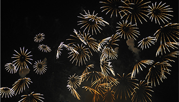 花火をそれらしくきれいに撮るには、打ちあがった直後にケーブルレリーズを押してシャッターを開き、花火が開き切ったら閉じるイメージだ。時間にして2~3秒程度だろう。重要なのは構図。しかし花火が開くまでどの程度の大きさでどこに開くか予想が難しい。やや広めの構図にして、撮っていくのがいいだろう。あとは予測だ。