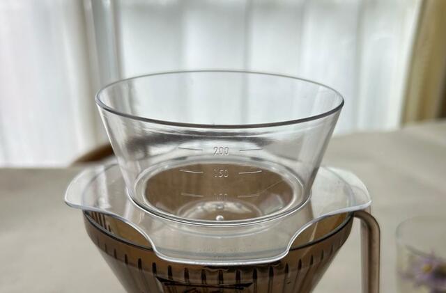 カップの横面には100、150、200mlの3つの目盛りが付いていて、入れるお湯をわざわざ計量しなくてよいのがラクです。
