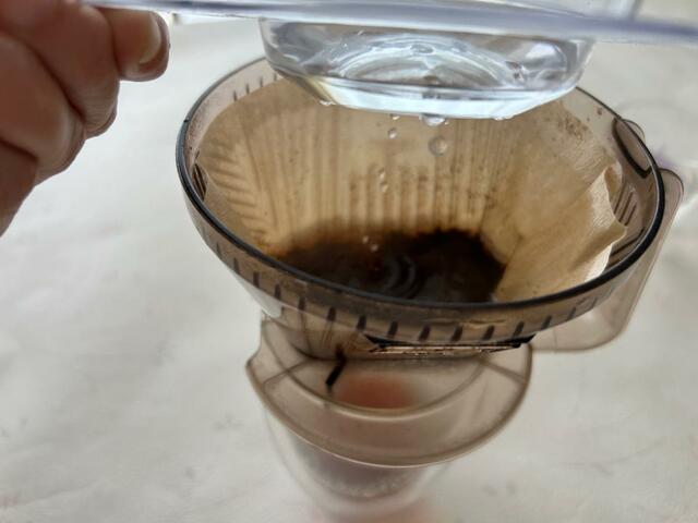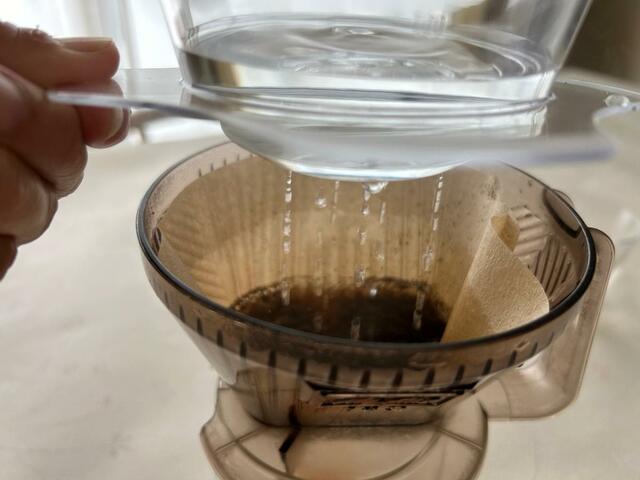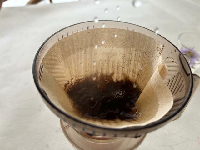 ドリッパーを引き上げてみると、少量ずつお湯が落ちていました。