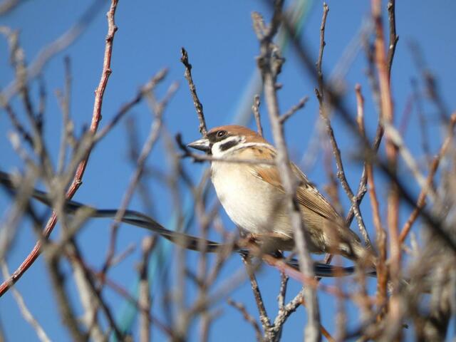 小さなスズメの表情だってばっちり! 意外とりりしい顔してるんだな……。