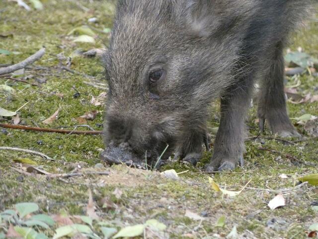 一心不乱に木の実を探す若い野生のイノシシ。「そんなに近づいたら危ないよ」と言われそうなこの写真も、超望遠ズームのカメラだからこそ撮ることができました。