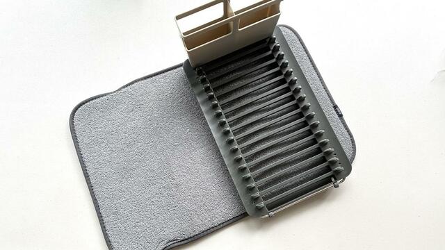 が、このセットの「水切りマット」は、ディッシュスタンドにぴったり重ねられるように最初から3つ折りされています。