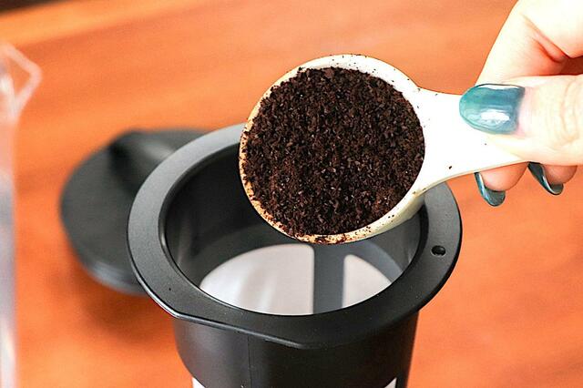 水出しコーヒーをつくる際は、中細挽きのコーヒー粉をフィルターの中に入れます。