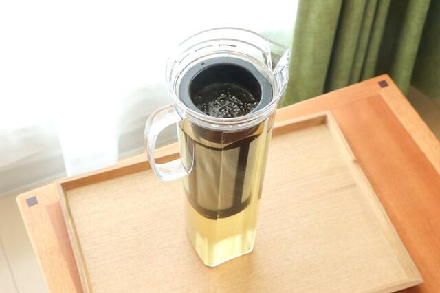 コーヒーのほかにも、ほうじ茶の茶葉を入れて水出しほうじ茶を作ったり、麦茶パックを入れて、麦茶ポットとして使ったりするのもおすすめ。