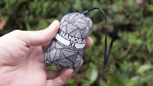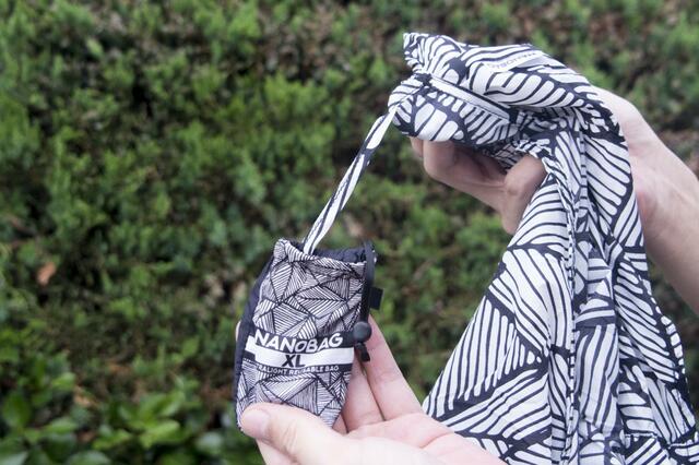 本体重量25gほどの軽量コンパクトさでありながら、容量25L、耐荷重30kgという、普段のお買い物なら足りなくならない大きさの「NANOBAG XL」。
