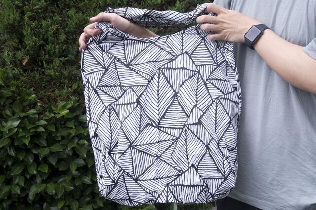 スーパーなどに買い物へ行くだけなら、いちいち収納袋に入れずポケットにいれてもかさばらずに収まってくれるので楽なんです。