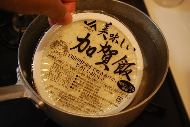 今回加熱は「NO電子レンジ」の商品にこだわってみました。でも、ん?これってこの袋ごと温めるのかな? でも中にスプーン入ってるし・・・。