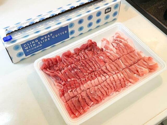 お肉の脂が箱につかないし、手袋をしたままでも、引き出して・切って・包むまでがとってもスムーズ。