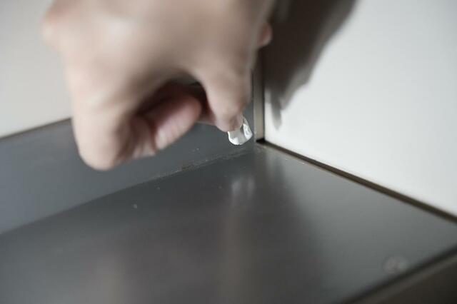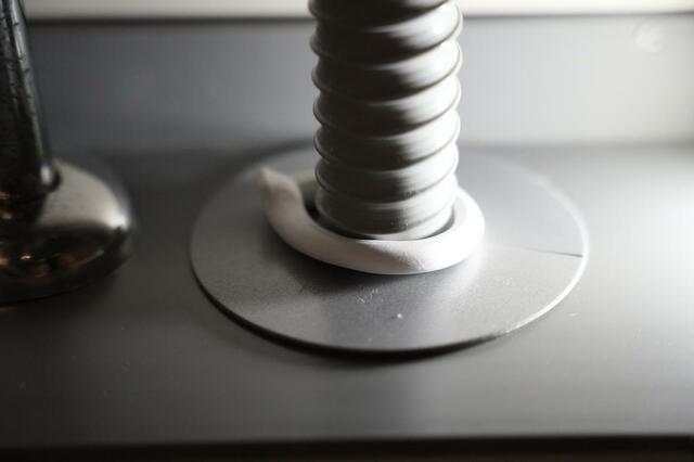使い方は想像通りといった感じですが、まずは粘土のように少し取り、塞ぎたい場所にセットします。