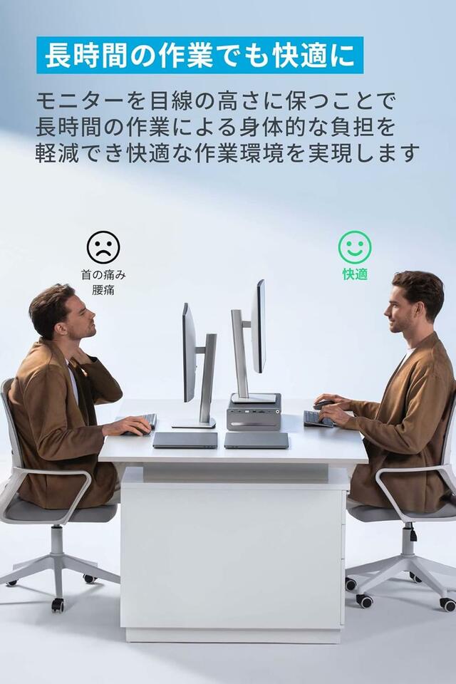 ノート+外部モニター1枚で作業する在宅ワーカーや、ガジェットを複数台充電したいミニマリスト首や体への負担を減らししたい30-40代の方へおすすめです。