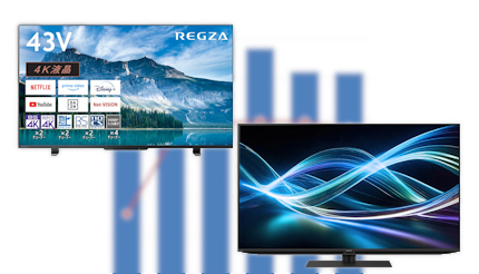 次に平均単価をみると、19年当時は、ハイエンドの機種に対応チューナーが搭載されていたため、14万5200円と高額だった。20年には13万600円、21年には12万円台と年々下落。その後12万円台で落ち着いたが、24年に13万4800円と上昇に転じる。円安や部材価格の高騰による影響もあるが、徐々に大画面化が進んでいることも平均単価上昇の一因となっている。