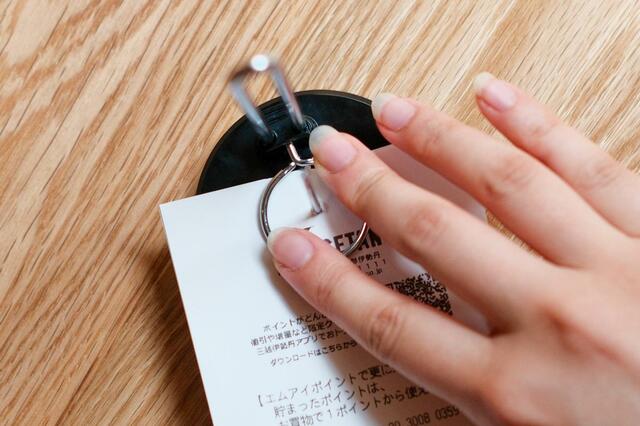 ワンプッシュで穴をあけてレシート類をまとめることができます。