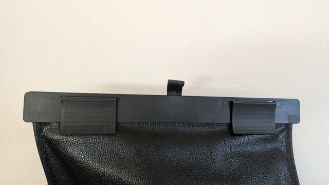 引っかけるときは、ゴミ箱背面のクリップ部分をポケットに挟んでいます。