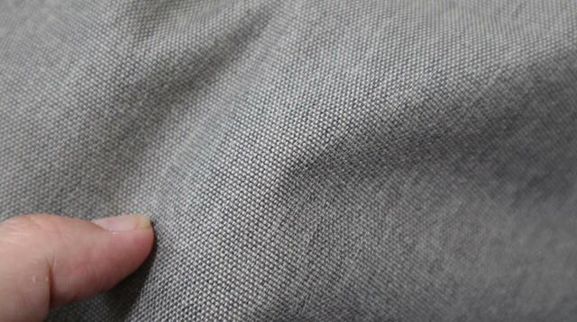 筆者はライトグレーを購入しました。素材はポリエステルですが、「いかにも化繊」のようなテロテロした光沢はなく、綿のようなナチュラル感のある杢調仕上げ。ざっくりと織られたマットな質感で、見た目も上品です!