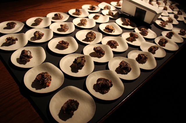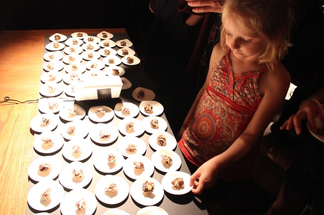 パフォーマンスの後にもお楽しみがあります。多摩美術大学メディアアーツ学部の生徒さん達がある‘音’を聞き、そこからインスピレーションを得たお菓子を食べることが出来ました。