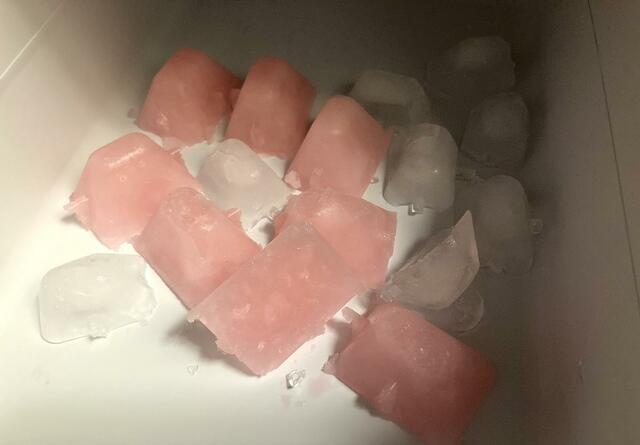 ピンク色が少しでも入っている氷は必ず捨ててください。