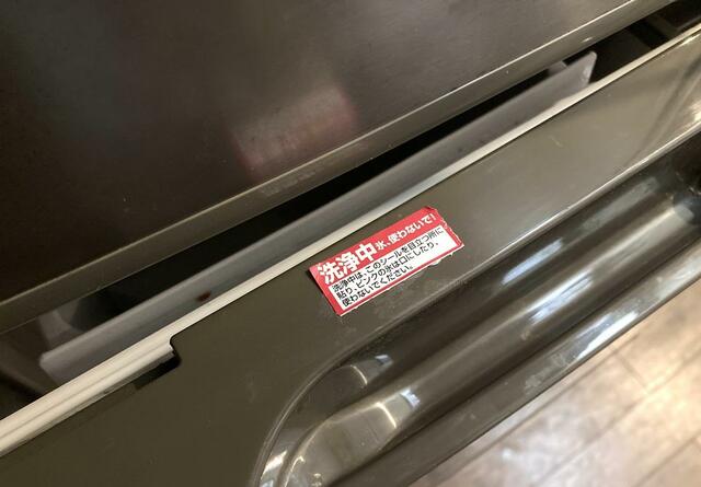クリーナー本体の裏側に、クリーニング中を知らせる注意喚起のシールが付属しています。