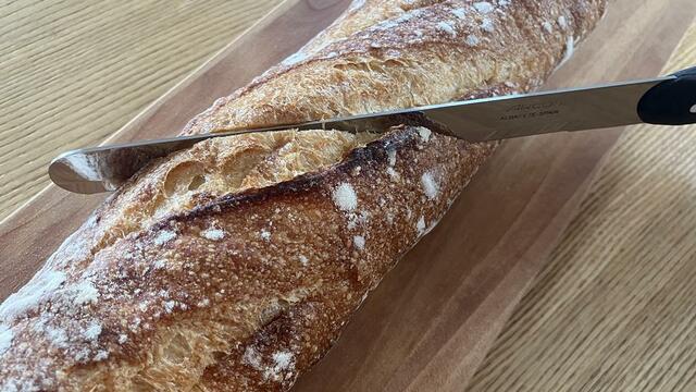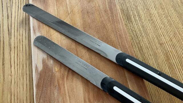 5㎝の違いですが長い分一気にスーッと引けるので、固めのパンなども力を入れずにサクサク切れます。