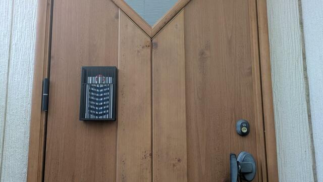実際に玄関ドアに付けてみると、ただ虫よけプレートをさげているよりも断然かっこいい!
