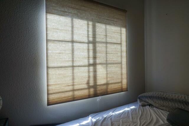 日差しがあるときは部屋にやわらかい光が入りますが、外からの光をシャットダウンしたい人は、遮光率99.99%以上の遮光シェードもあります。