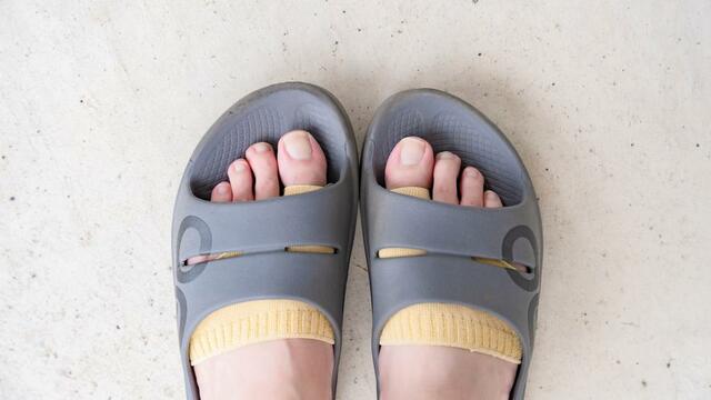 履いてみるまでは、サンダルの中で脱げてしまったり、クルクルっと巻いて上がってきてしまうのでは……? と半信半疑でした。